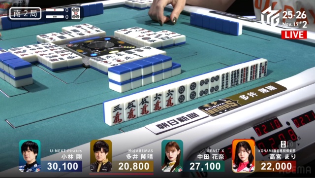 日本の壁:多井隆晴はなぜ【2筒】を切ったのか?【Mリーグ2025-26 レギュラーシーズン 観戦記 11/17 第2試合】担当記者 渡邉浩史郎