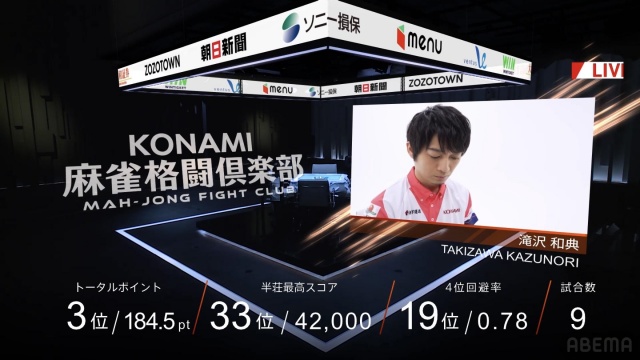 東家:滝沢和典KONAMI麻雀格闘倶楽部