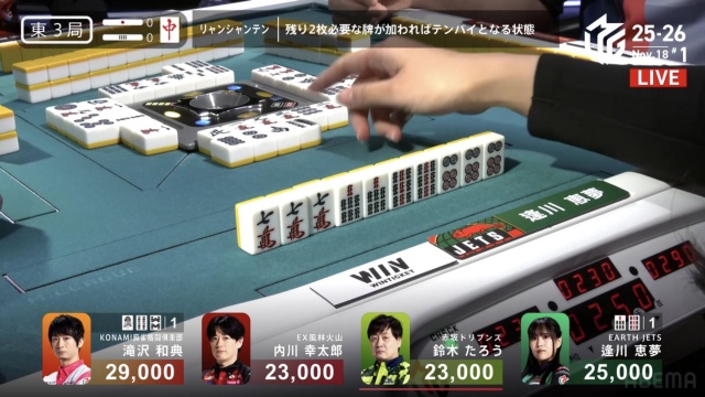 チンイツのテンパイ。アガリ牌が顔を出さない中で、滝沢が持ってきたのは、