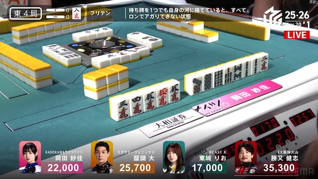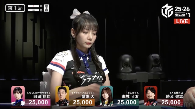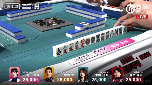 東家:岡田紗佳(KADOKAWAサクラナイツ)