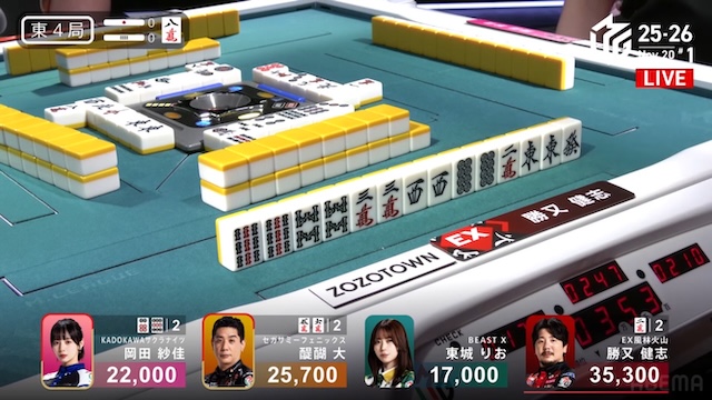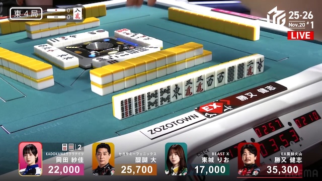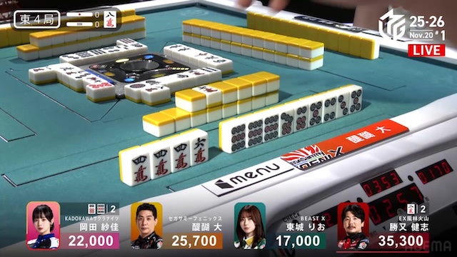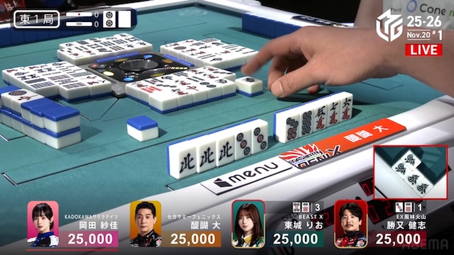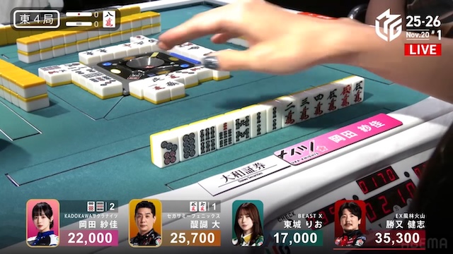他の3者と比べても遜色なく、むしろ“ここから伸ばしたい”手格好。今季まだトップのない岡田にとって、親番で勢いをつけたい局面だった。