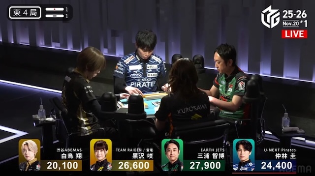 今シーズンから参戦した三浦は、Mリーグ初勝利を挙げたものの、その後は三戦連続で連対を逃し、個人スコアは▲288.1ptと苦しい状況が続いている。ここらで浮上のきっかけを掴みたいところだ。