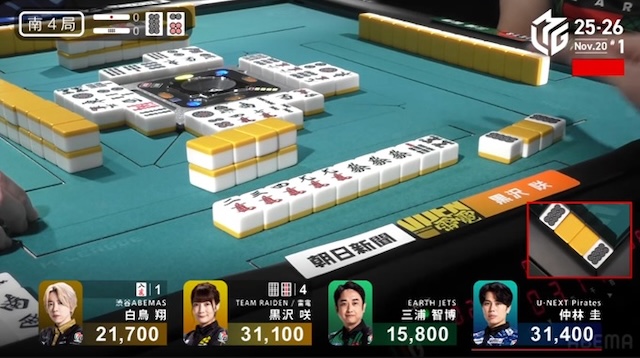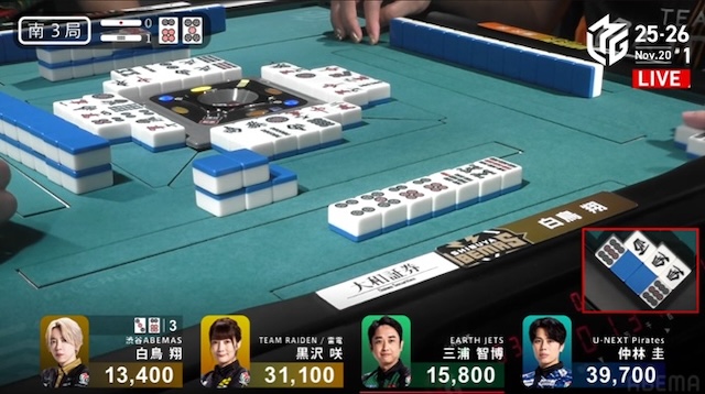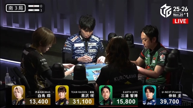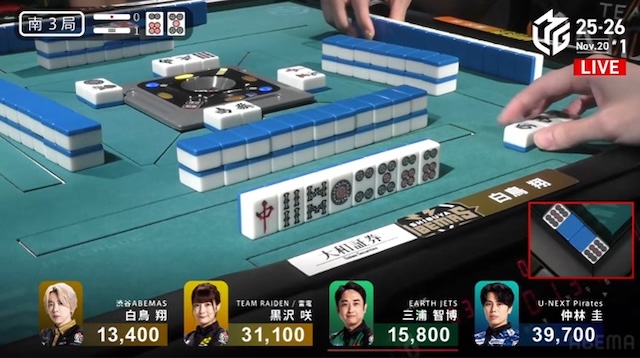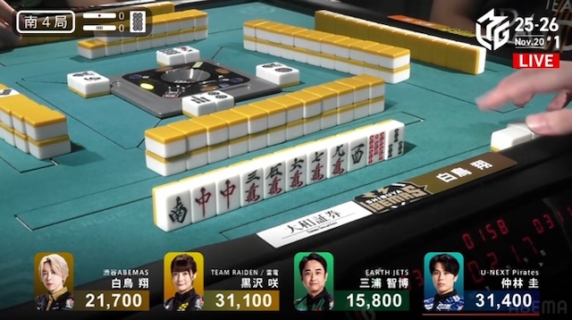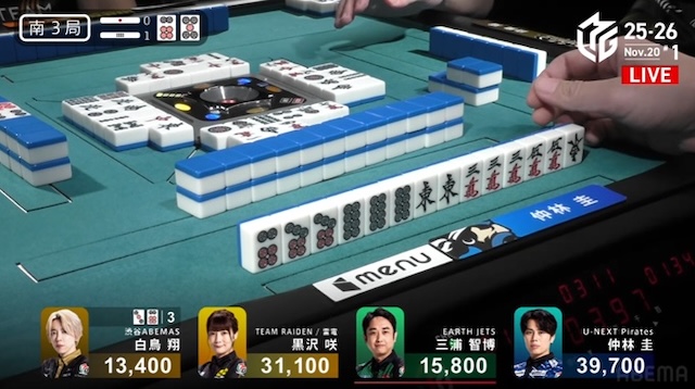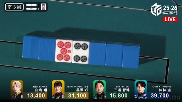 南2局では、三浦から仲林が5200を加点。南3局は流局となり、迎えた南3局1本場。