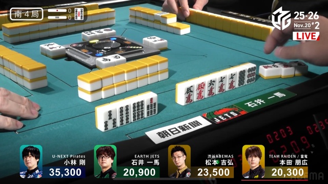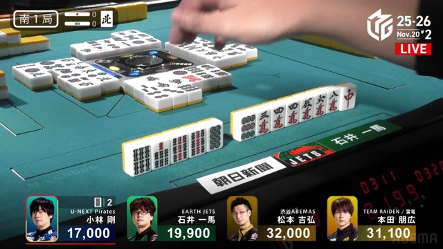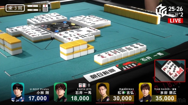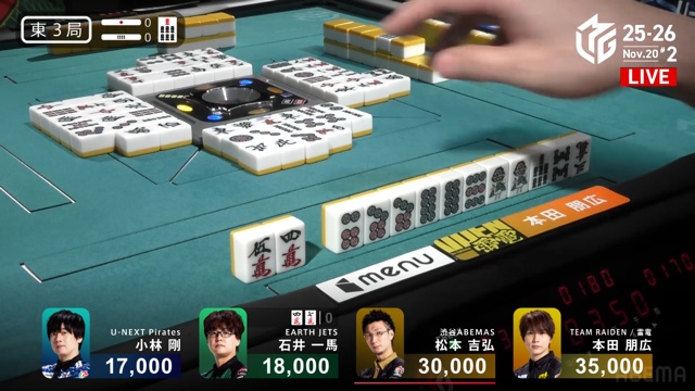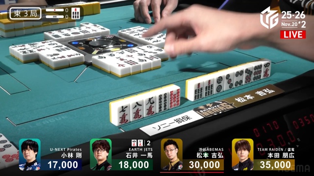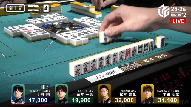 親の松本、ドラドラ・赤のイーシャンテンも一馬の当たり牌