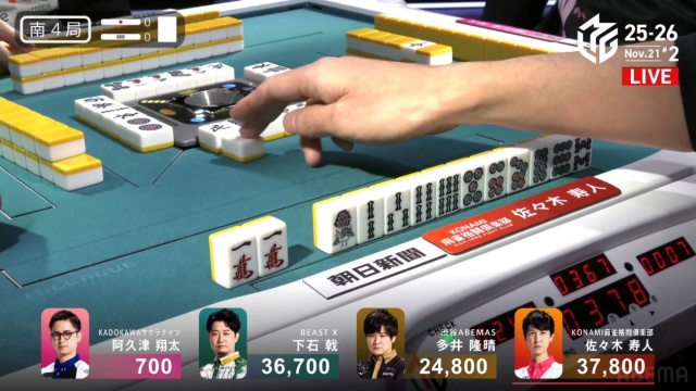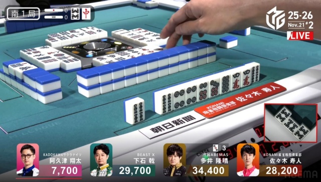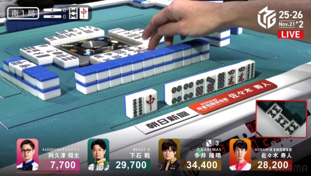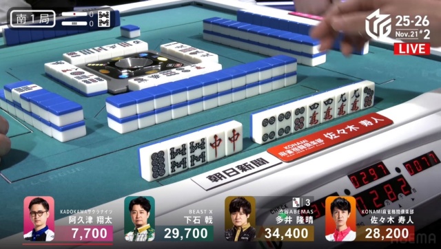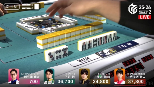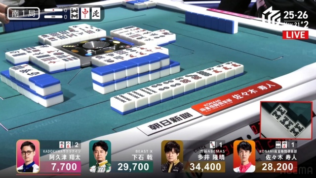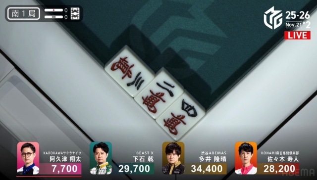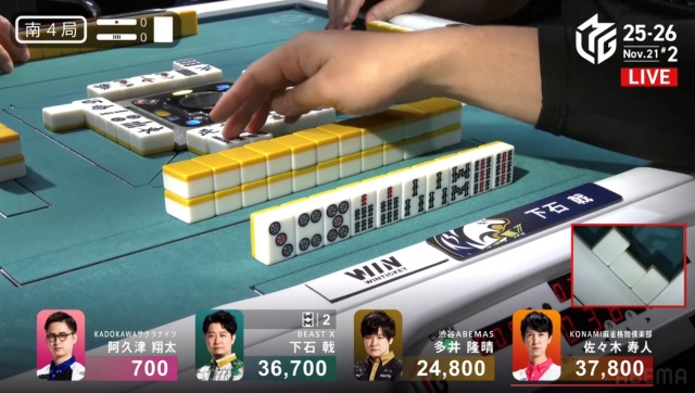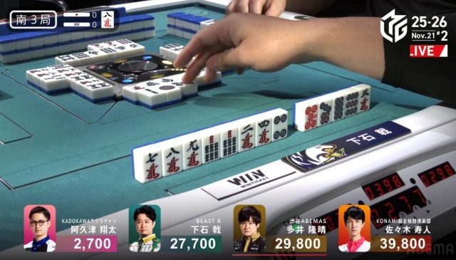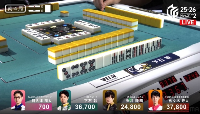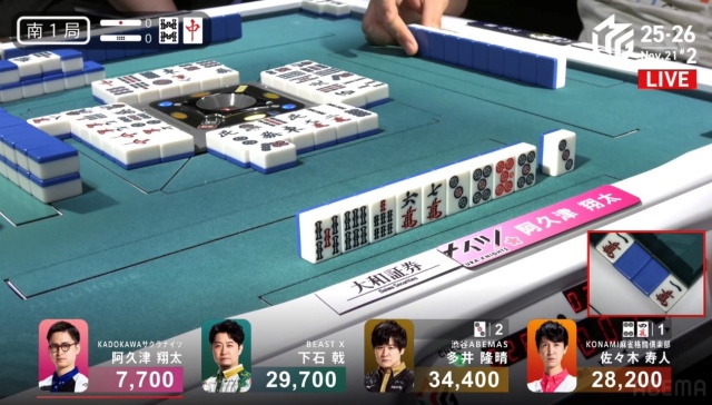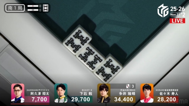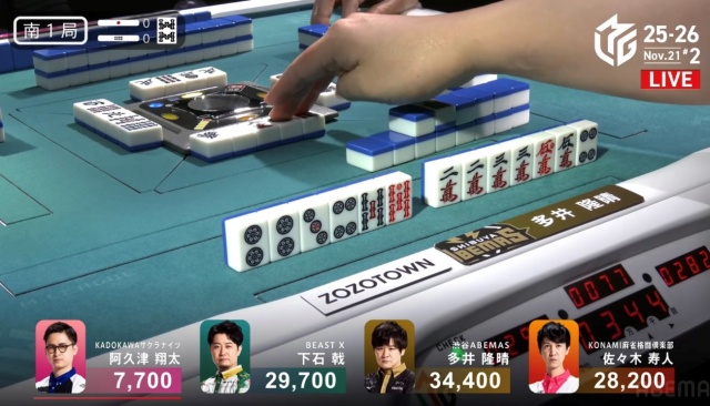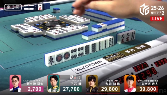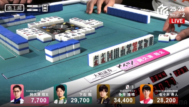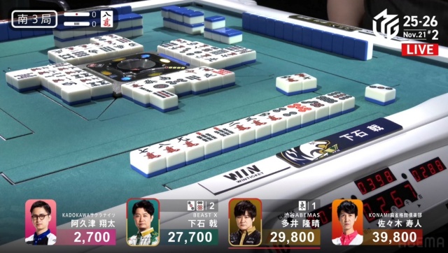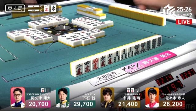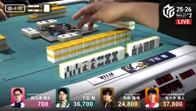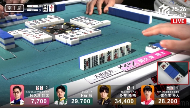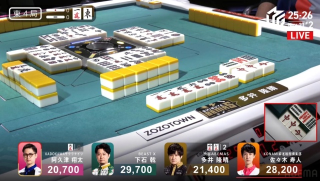 空テンとなっていた阿久津は成す術なく、多井に高めで放銃。