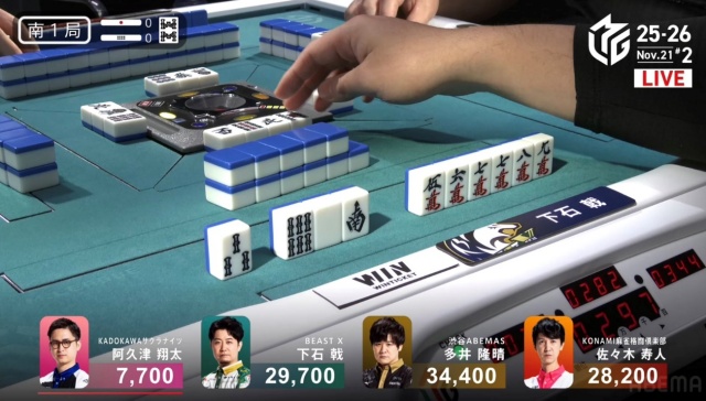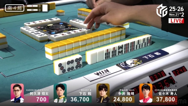絶好のタイミングでドラが鳴けた下石にテンパイが入り、ゴールは目前。