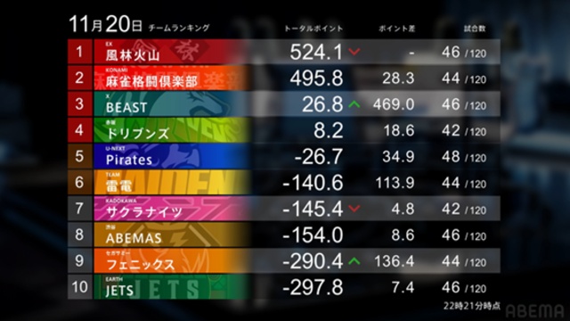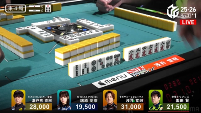 奇しくも昨シーズンのファイナルに残った4チームが顔をそろえた今日の対局。ますます混戦を極めるMリーグ戦線の荒波に飲み込まれぬように、少しでも上を目指したいところだ。