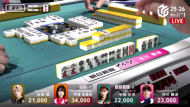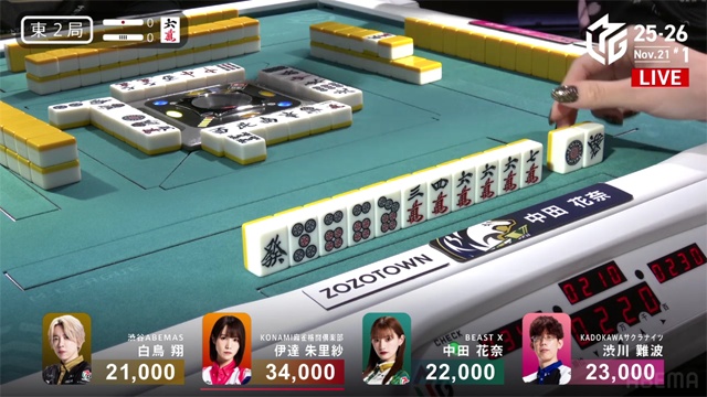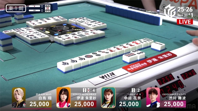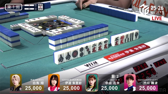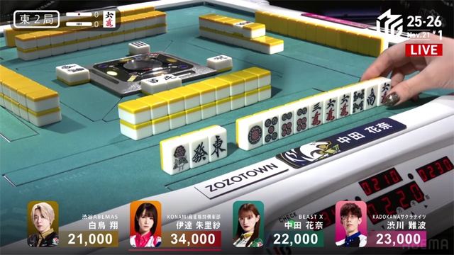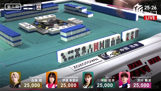 11/21、麻雀チャンネル第1試合は、こちらの4選手で行われた。
