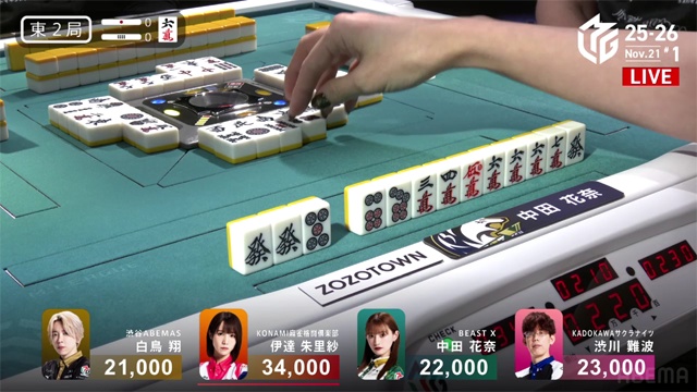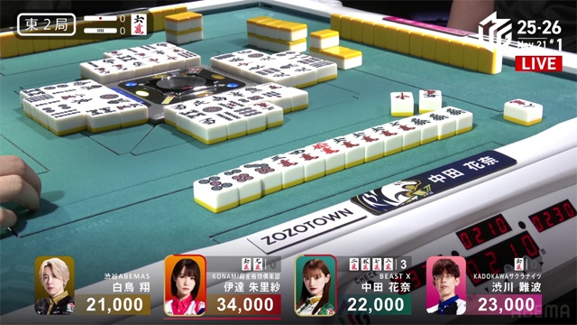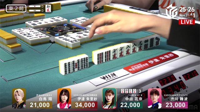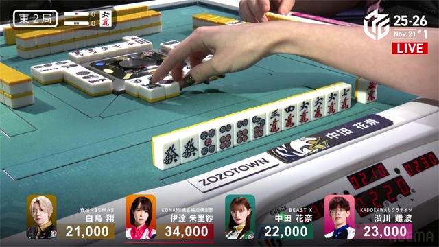 さらに中田のリーチ棒1000点も加わり、まずは伊達が先取点を挙げた。