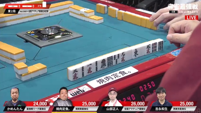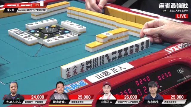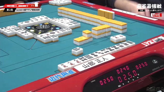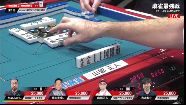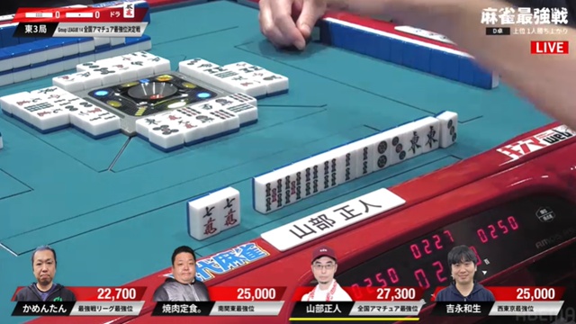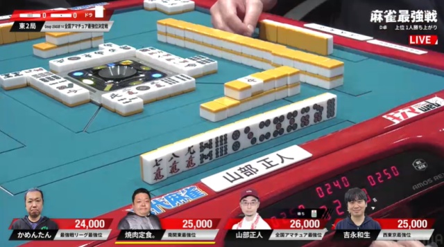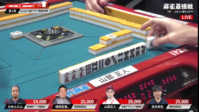 山部はかめんたんがピンズを仕掛け、2枚切れとはいえ