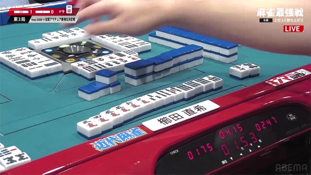 を捉え、裏ドラが乗りメンタンピン裏1、満貫のアガリとなった。対局の行方は、まだまだわからない。