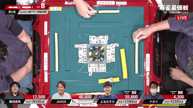 ここが天王山となるか、上位二人のリーチ対決を制したのは、JOKERだ。
