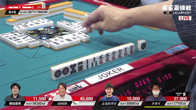 ――このアガリが呼び水となったか、南場でもJOKERはリーチで攻めまくる。
