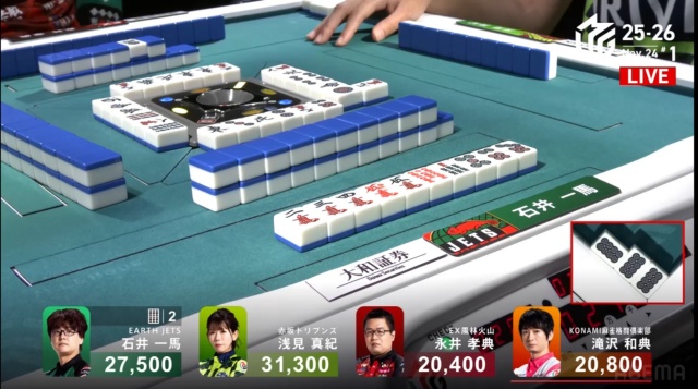 一馬が浅見を追う展開での南4局。