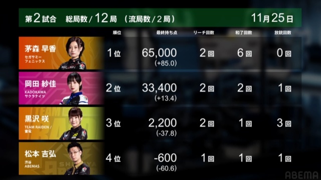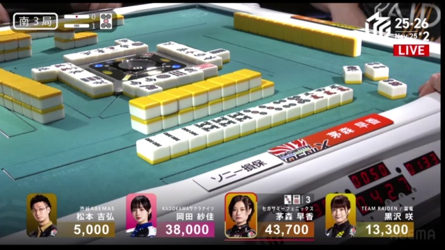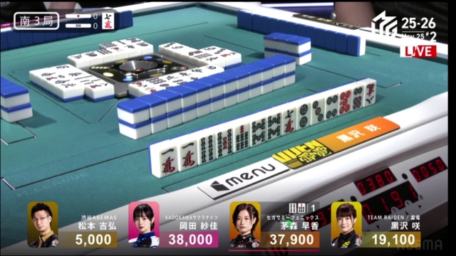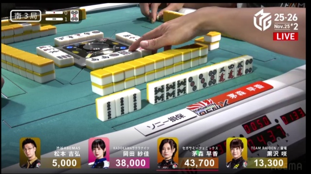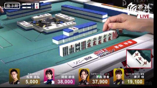 黒沢は放銃3回と、守備も強い選手にしては珍しい、反省の残る試合となってしまった。