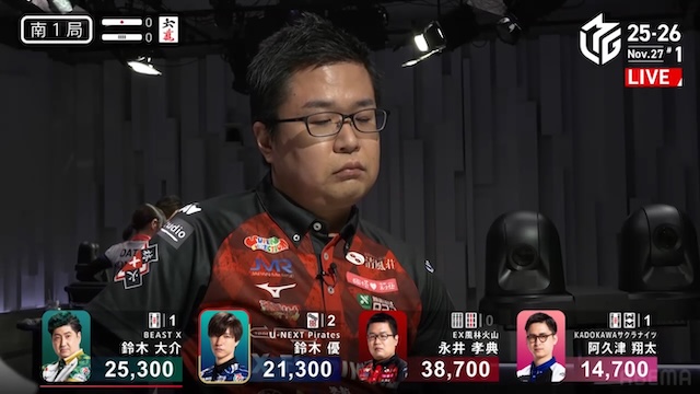 このトップで、永井孝典はついに今季7勝目に到達。勝利数はリーグ単独最多、トップ率も50%に到達という、目を疑うような数字を叩き出した。今季からMリーグの舞台に立った新加入選手とは思えないほど、堂々とした存在感。いつの間にか卓の中心には、永井の姿があった。