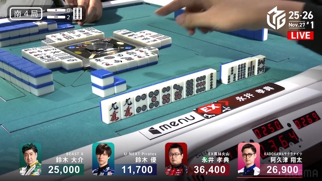 が、永井のアガリ牌となり、最後は自身のアガリでトップを決め切った。