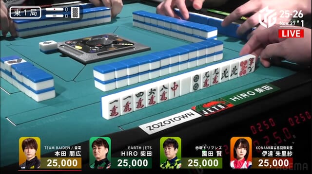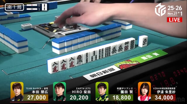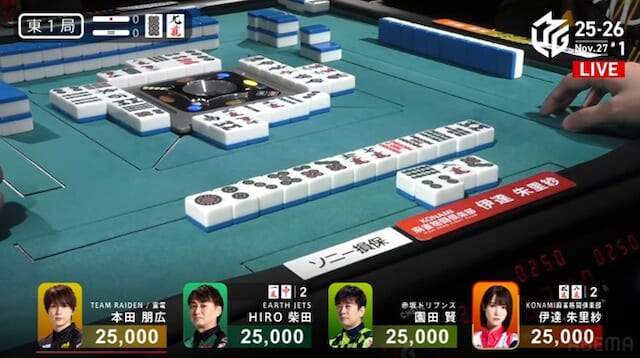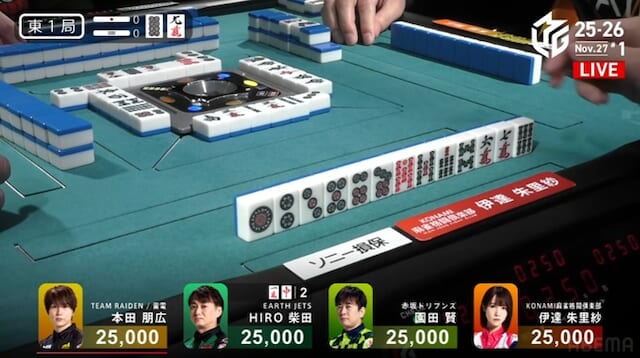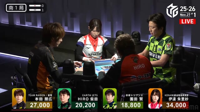 首位を走るKONAMI麻雀格闘倶楽部に対し、他の3チームはいずれもマイナスポイント。4位以下がマイナスという厳しいボーダー争いの中、各チームとも一つのアガリ、一つのトップが命運を分ける展開となっている。