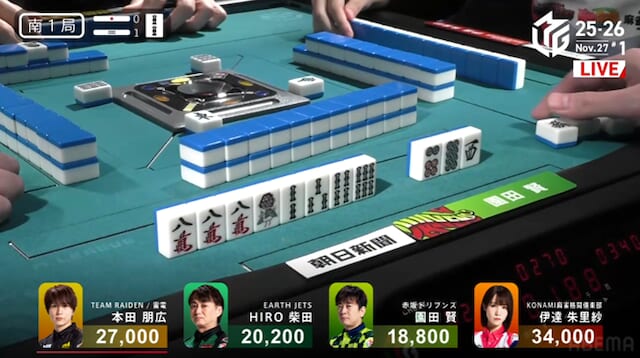 園田の2副露に呼応するように、伊達と本田も積極的に仕掛けを開始。
