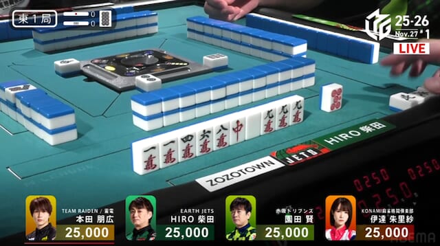 伊達にとっては好調の滑り出し。一方、連続2着でトップが欲しい柴田にとっては、チャンス手からの放銃という厳しい展開となった。