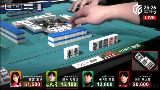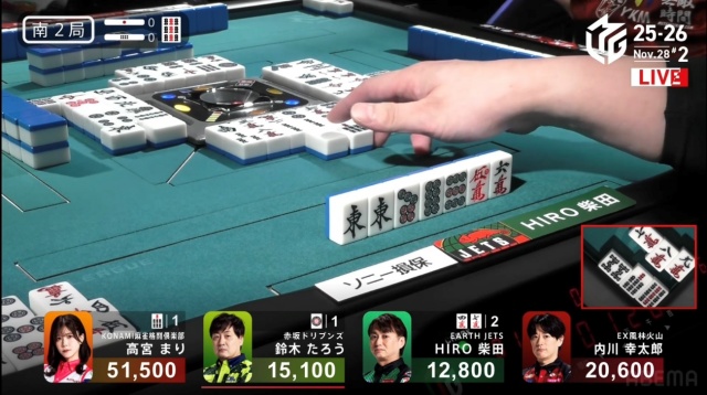 HIRO柴田も三着浮上を目指してリーチを放った。