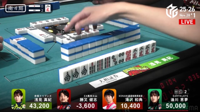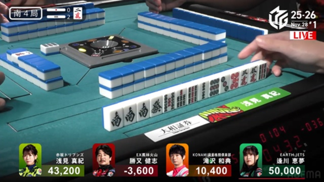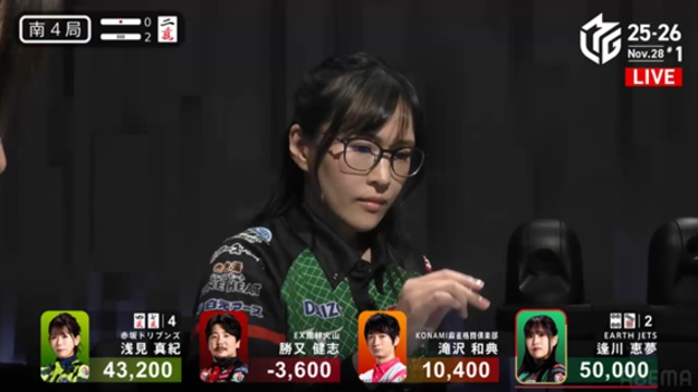 オーラスを迎えた時点で、2着目の逢川に13200点差をつけて浅見がトップ目に君臨。しかし、戦いはまだ終わっていなかった。