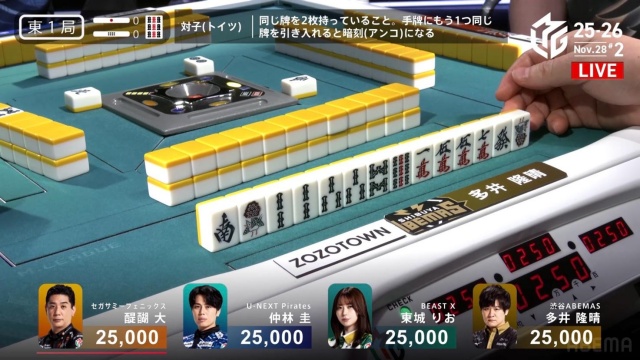 この試合の総局数は、たったの10局。しかも流局ゼロでアガリ10回・放銃6回だった。数字だけ見ると少し荒れ気味な雰囲気すらある。