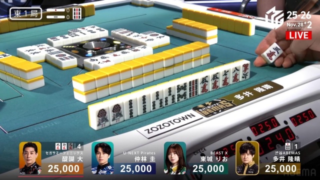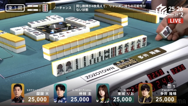 嫌な流れを断ち切るべく、卓には絶対エースの多井隆晴が座っていた。