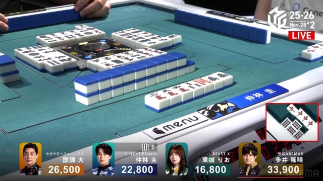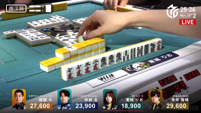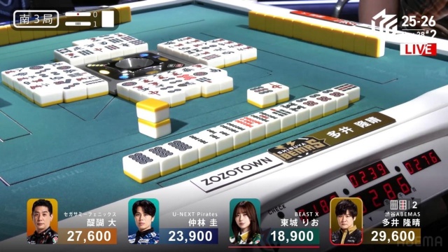 少しだけ発動が遅れたが、お得意の(途中から)配牌オリを披露。