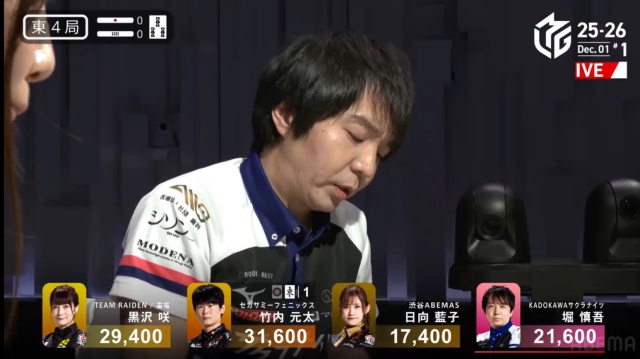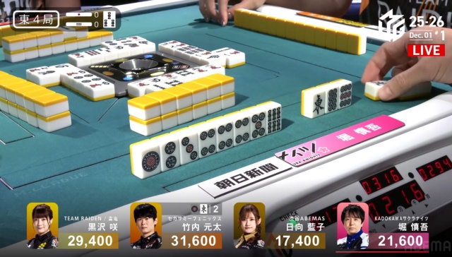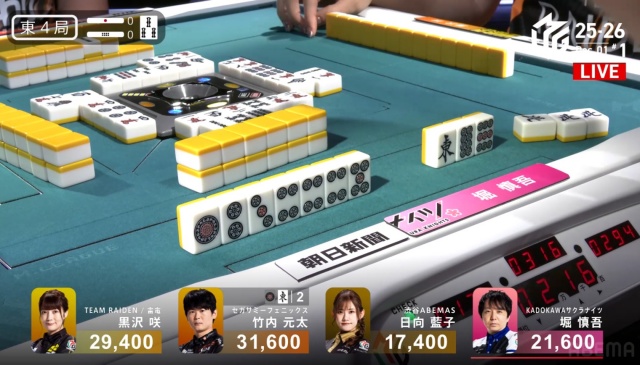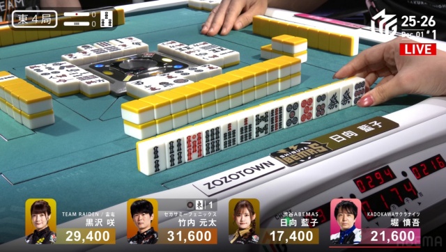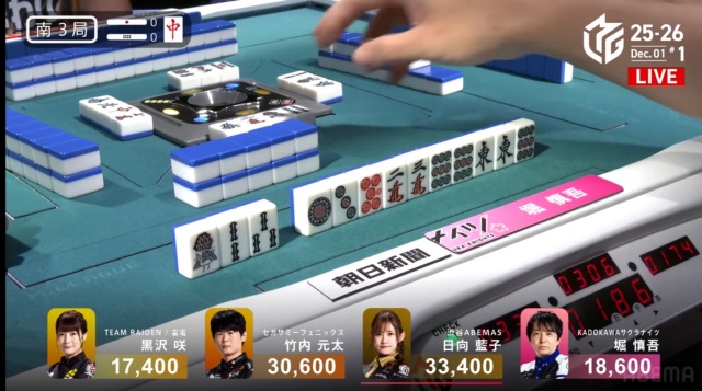 日向が2度のアガリでトップ目に立って迎えた南3局、堀はこの