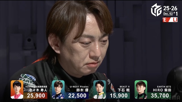 今回はいいメンバーだなと思ったわけよ。数字も持ってるし、寿人、鈴木優、下石、HIROと、この4人だから「面白いメンツだな、みたいな」と思うメンツだった。だけど、下石さんは見ていて何かもったいないなと思ったね。もうちょっと魅力がなくちゃいけないと思う。今年は浮いて、成績もチーム的にはいいかもしれないし、ここから200沈むのは考えられないからチームをリードしていく立場だけど、彼が来年できるかと言うと、今の麻雀を見ていたら難しいなと思うね。HIRO君は今年はスタートでものを言って始まっちゃったからアレだけど、それがなくなれば、ずっとプラスでいるんじゃないかな。僕はそう思う。