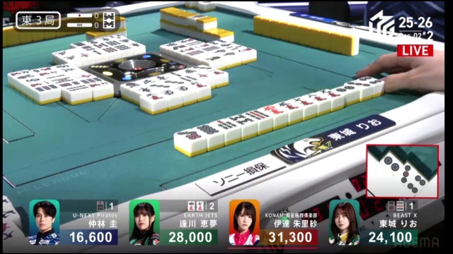 満貫ツモでは200点届かず、トップまでハネ満ツモ条件だった逢川。