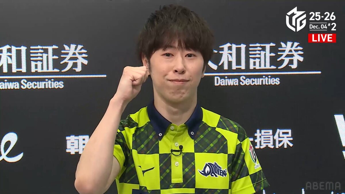「かなりうれしいです。これでチームまだプラマイゼロ付近にはいれると思うので、踏み止まれたかなという感じですね。個人としては、滑り出しが4着のあと3着4回とかでマイナス100越えからスタートしたんですけど、蓋をあけてみればそこから好調でいい感じの麻雀を打ててると思うので、自分が耐え忍んでいる間にチームメイトも復活してくれると信じてますので、さらにポイントを伸ばせるよう、チーム一同頑張ってまいります!」