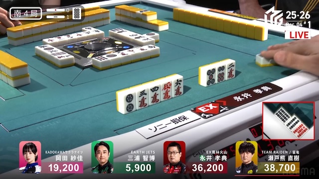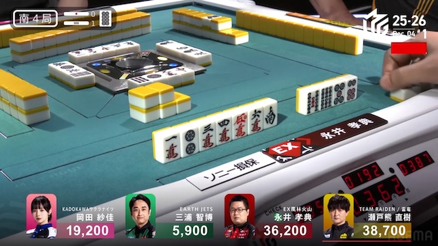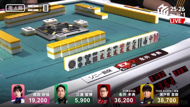 永井のアガリはタンヤオ・赤赤の3900は4200。