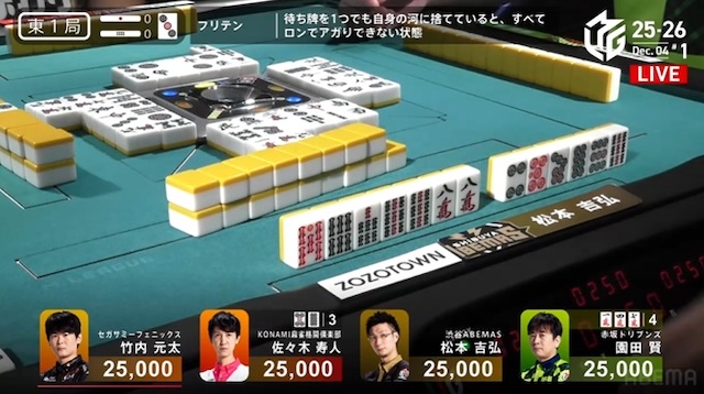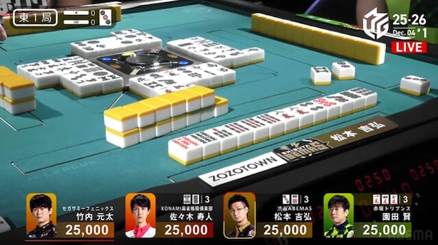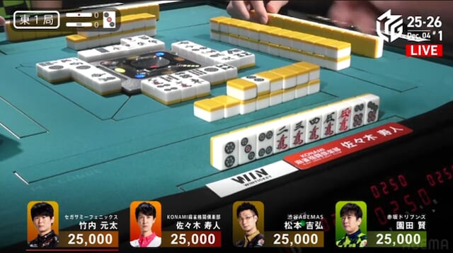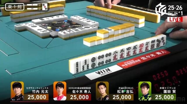 南家:佐々木寿人(KONAMI麻雀格闘倶楽部)