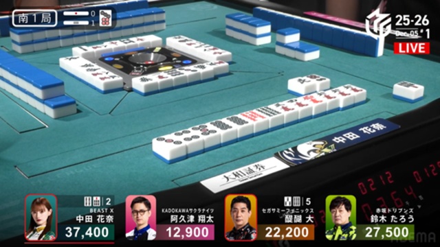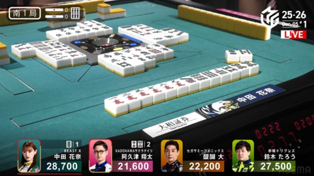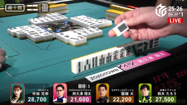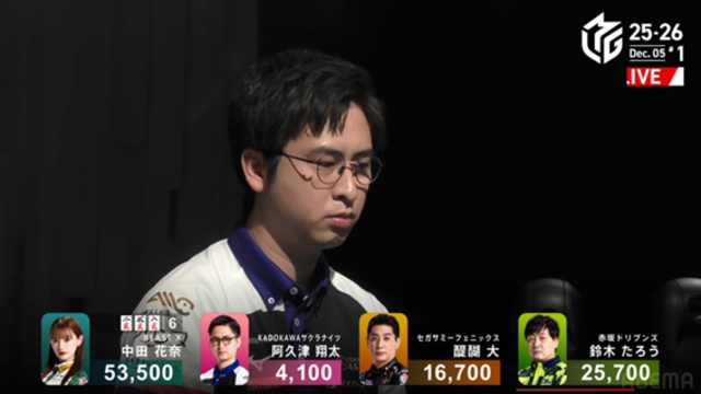 ラス目に沈んだ阿久津の和了を阻止せんとする展開に飲み込まれ、醍醐、たろうに安い手でかわされる苦しい試合となった。