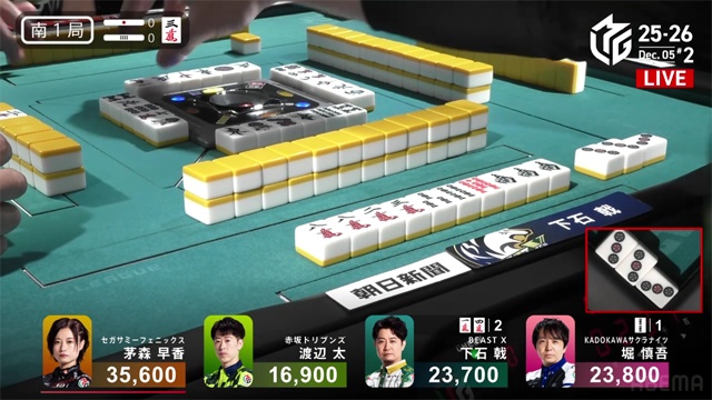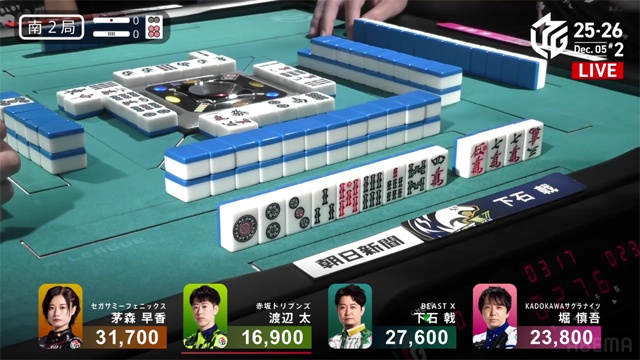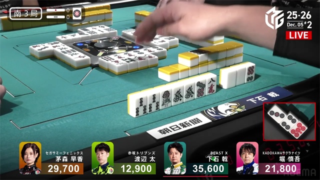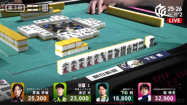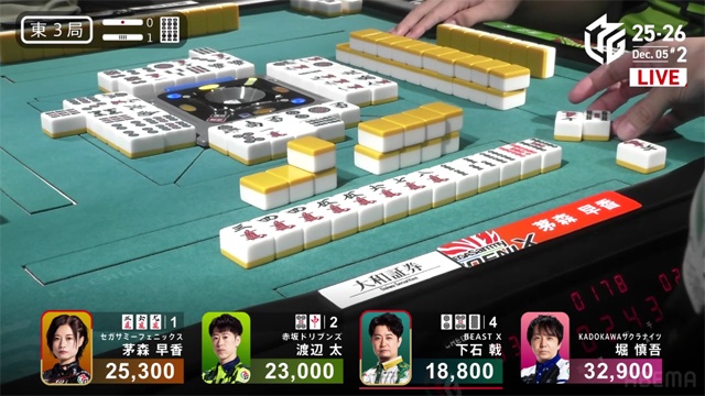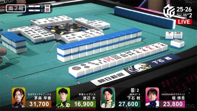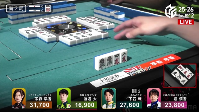 この鮮烈なアガリで、茅森はトップ目に立つ。