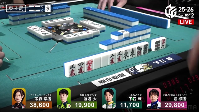 12/5、麻雀LIVEチャンネル第2試合は、こちらの4選手で行われた。