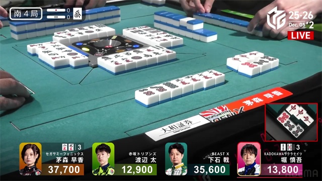 リーチ棒を出した堀はラスに落ち、太が3着に。