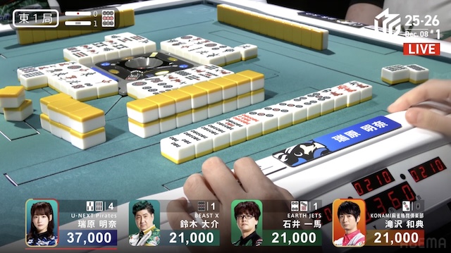 今日は瑞原が完璧によかったです。手順もいい、ツモもいい、度胸もいいという感じ。今日は東1局で決まっちゃいましたね。東1局のリーチツモ