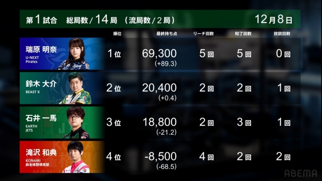 瑞原の良さが十二分に出た半荘だったように思う。