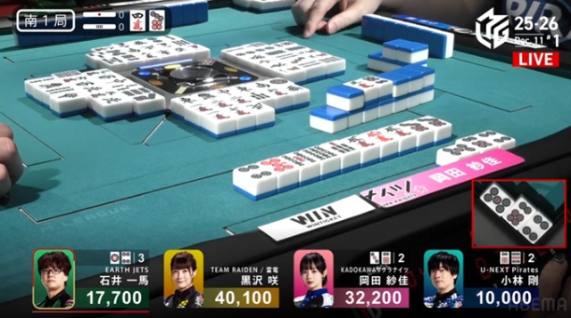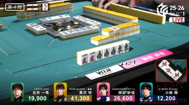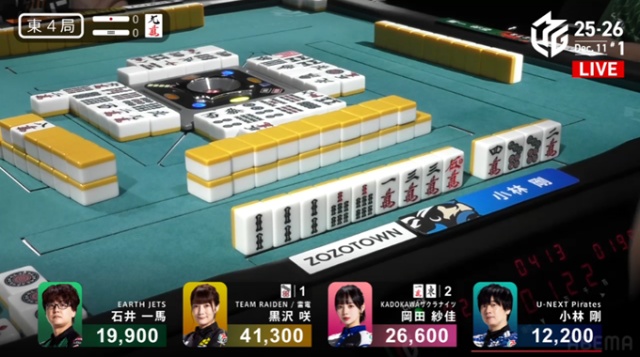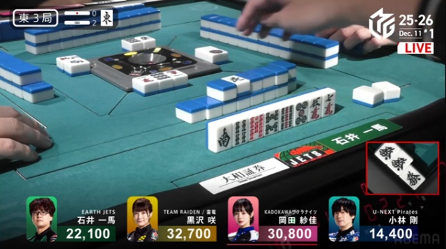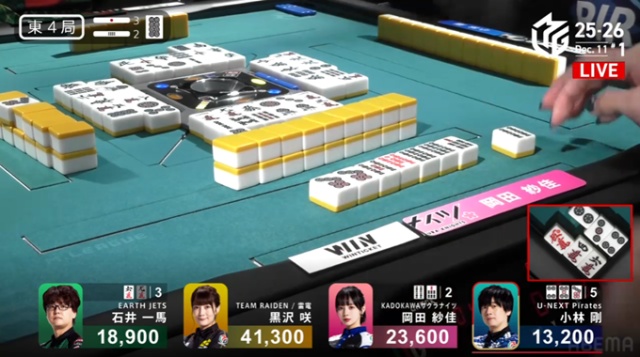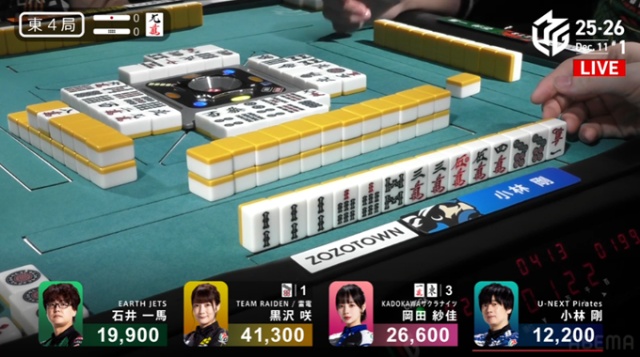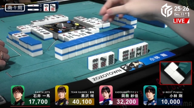 その直後、小林が一発目に引き寄せたのは一馬のアガリ牌の