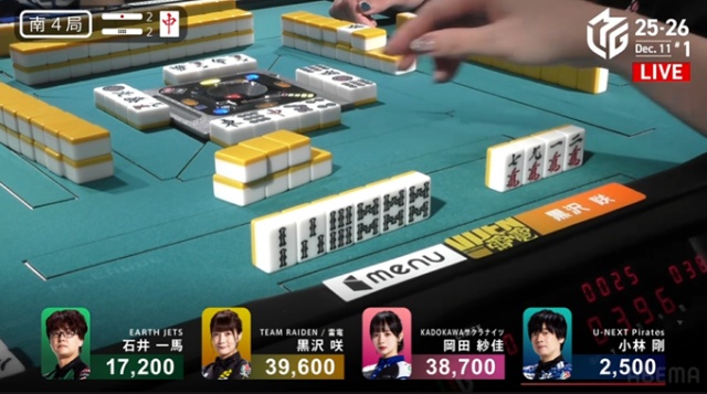 黒沢は今シーズン、副露やダマを織り交ぜた柔軟なスタイルを見せてきたが、この日は昨季までの持ち味である門前高打点のリーチが冴えわたった。東1局と東3局2本場でのツモアガリは、まさに“らしさ”が際立つ一撃だった。