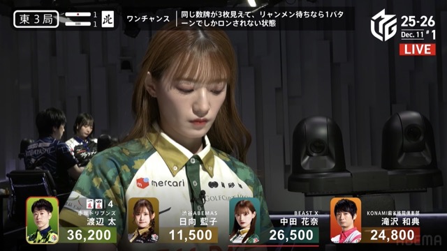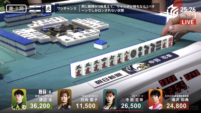 北家:滝沢和典(KONAMI麻雀格闘倶楽部)