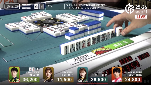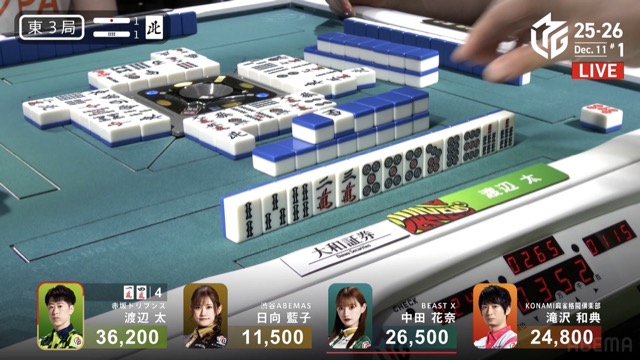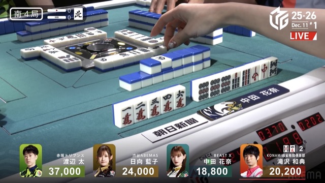 太にとっては滝沢に対して不安な連荘を許してしまったが、続く1本場を辛くも凌いでトップ奪取。