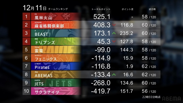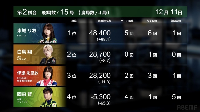 このあとは、東城が危なげなく逃げ切ってトップを獲得。