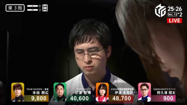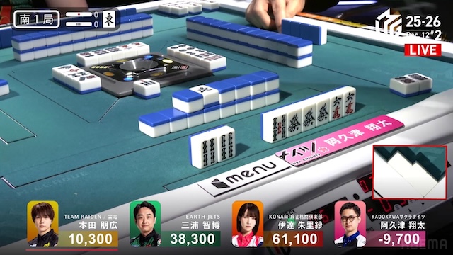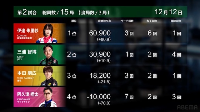 この日、阿久津は一際多い7回ものリーチを放つも、結果は持ち点を大きく下回るラス。