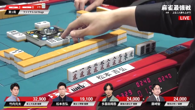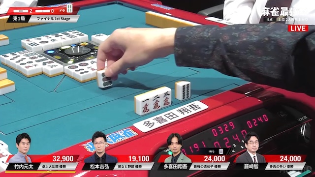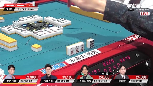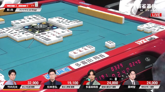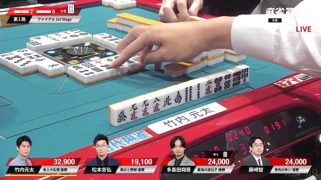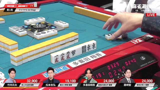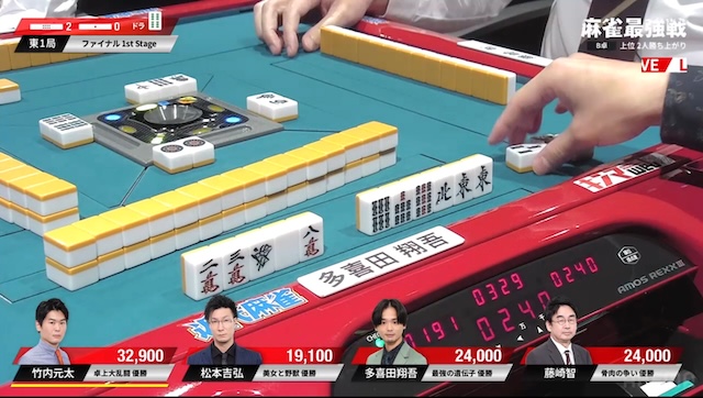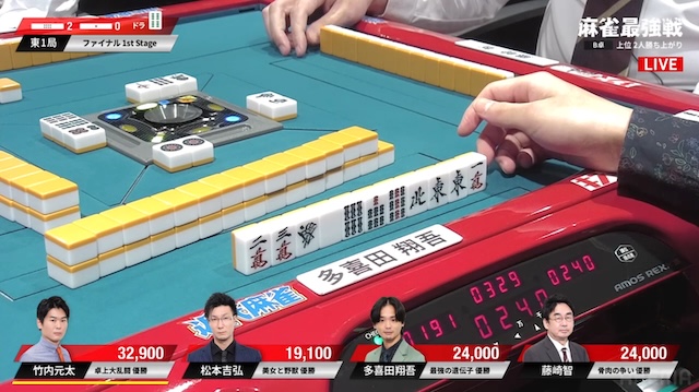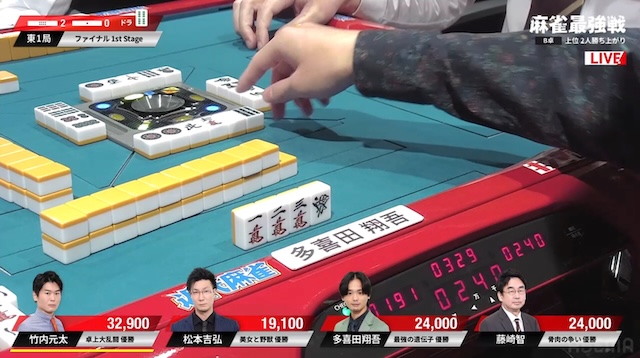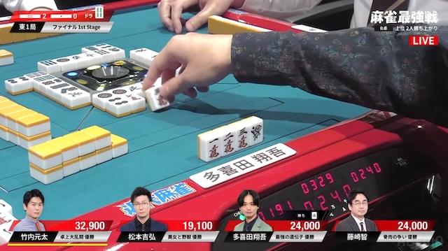この局は全員の配牌が良くない中で、積極的に仕掛けた多喜田がスピードで完全に上回った。