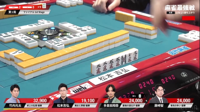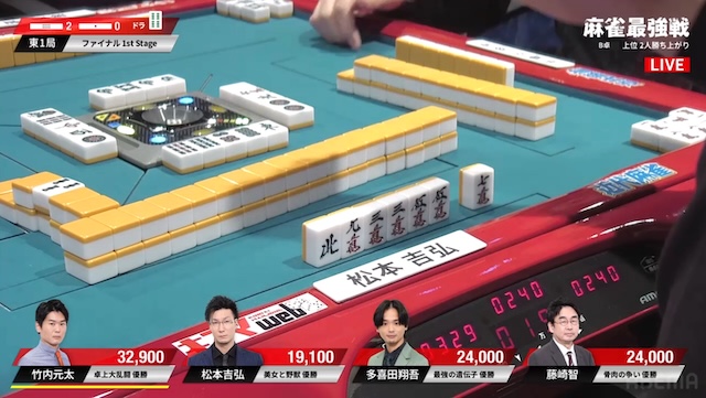 バチバチにぶつかりあったB卓、現Mリーガーの竹内・松本、元Mリーガーの藤崎を、29歳・若手超有望株の多喜田が翻弄する。