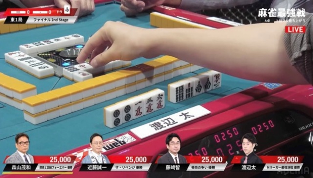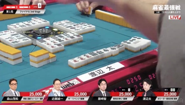 Mリーグでもおなじみ、徹底した攻めっぷりで卓上を制圧する渡辺太が序盤をリードした。